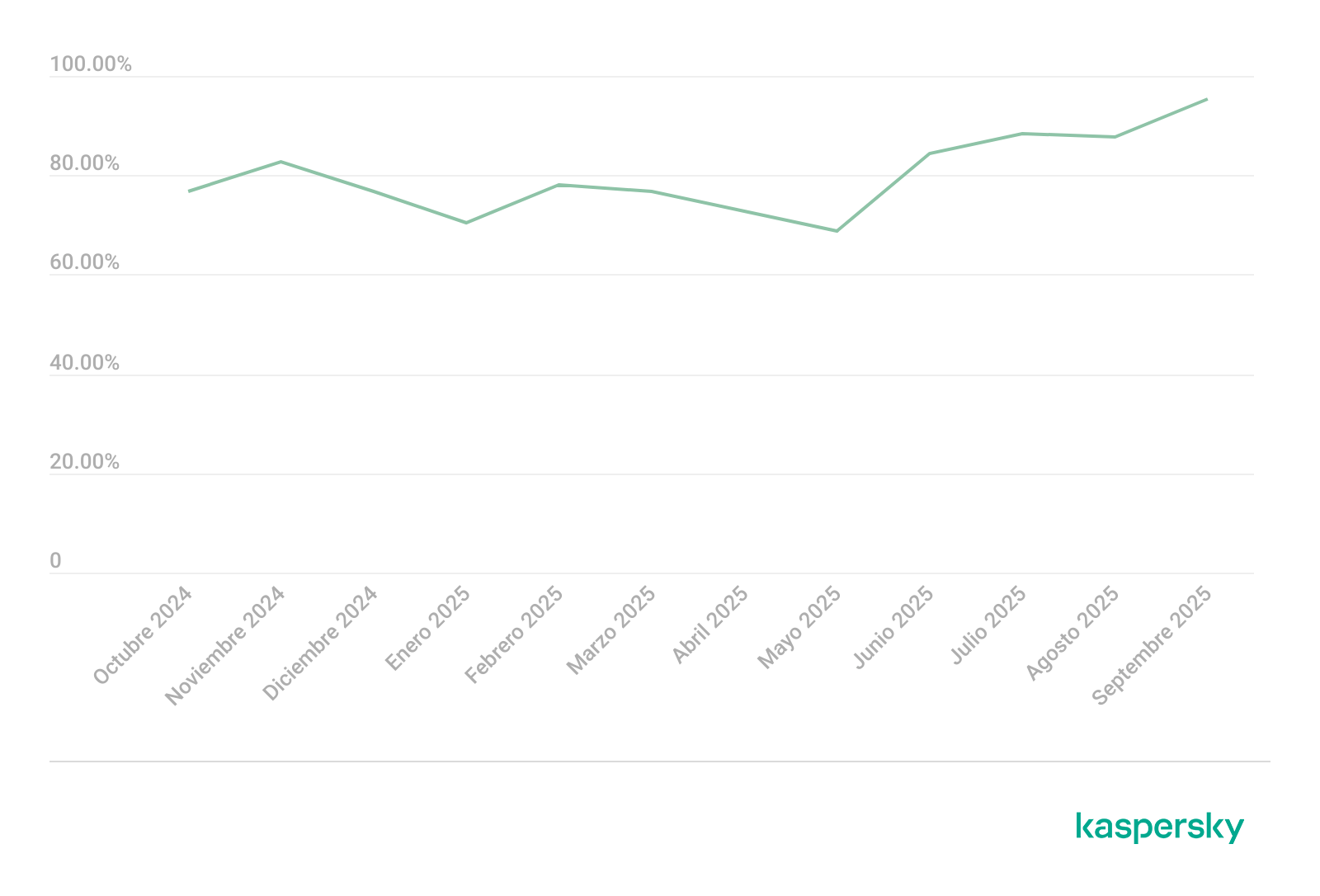 Evolución del número de ataques que utilizan la técnica de DLL Hijacking. 2023 se considera el 100% (descargar)