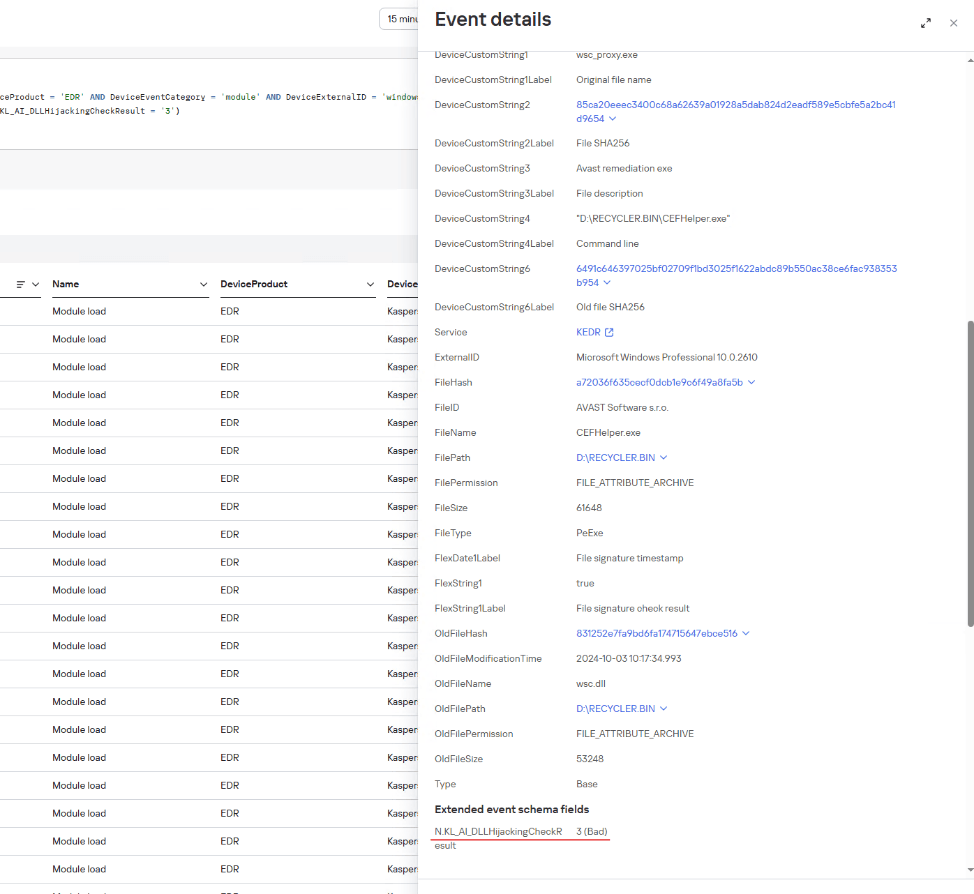 Como resultado de la incorporación del modelo en el producto, se adquirió la capacidad de detectar de manera temprana y precisa los intentos de DLL Hijacking, que antes podían pasar inadvertidos. Ya en la fase piloto, el modelo demostró su eficacia al detectar varios incidentes en los que se aplicaba esta técnica. En el futuro, su precisión aumentará gracias a la acumulación de datos y a la actualización de los algoritmos en KSN, lo que convierte este mecanismo en un elemento fiable de la protección proactiva de los sistemas corporativos.