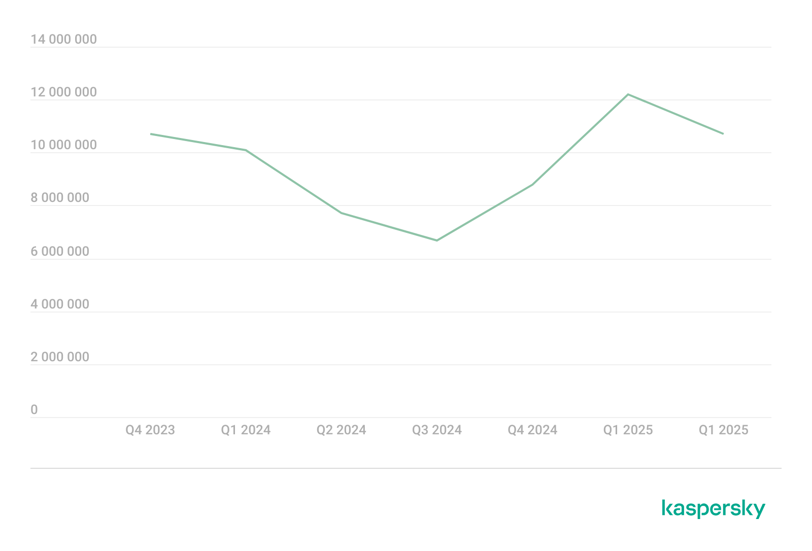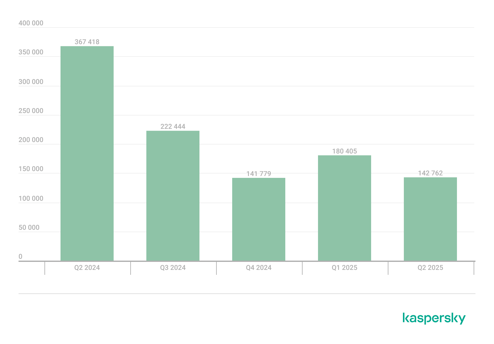 “Número de ataques a usuarios de soluciones móviles de Kaspersky”, del cuarto trimestre de 2023 al segundo trimestre de 2025 (descargar)