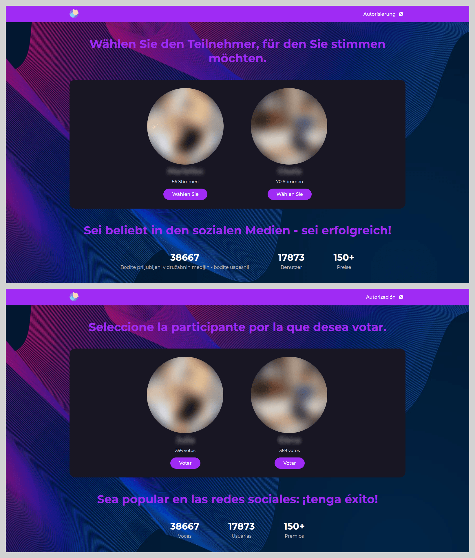 La temática más popular en los fraudes de votación, los concursos infantiles, se difundía a través de WhatsApp. A la vez, las páginas de phishing casi no variaban: los atacantes usaban el mismo diseño y fotos señuelo, y solo cambiaban el idioma del recurso según la ubicación del público objetivo.