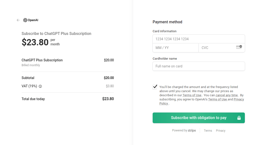 Los atacantes utilizan cada vez más el tema de la inteligencia artificial como señuelo. Por ejemplo, vimos recursos que imitaban la página oficial de pago de la suscripción a ChatGPT Plus.