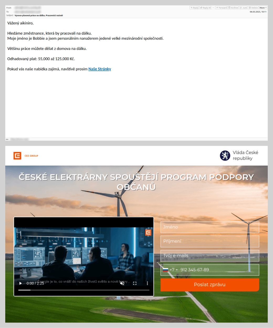 Ya hemos escrito sobre estos envíos. Antes, apuntaban a usuarios rusoparlantes y se enviaban usando sobre todo el nombre de grandes organizaciones financieras. Sin embargo, en 2025 el esquema de inversiones falsas también se empezó a usar en otros países de la CEI y de Europa, y se amplió el espectro de actividades de las empresas que los spammers imitaban. Por ejemplo, en sus correos los atacantes proponían invertir en proyectos de grandes empresas del sector manufacturero de Kazajistán y Chequia.