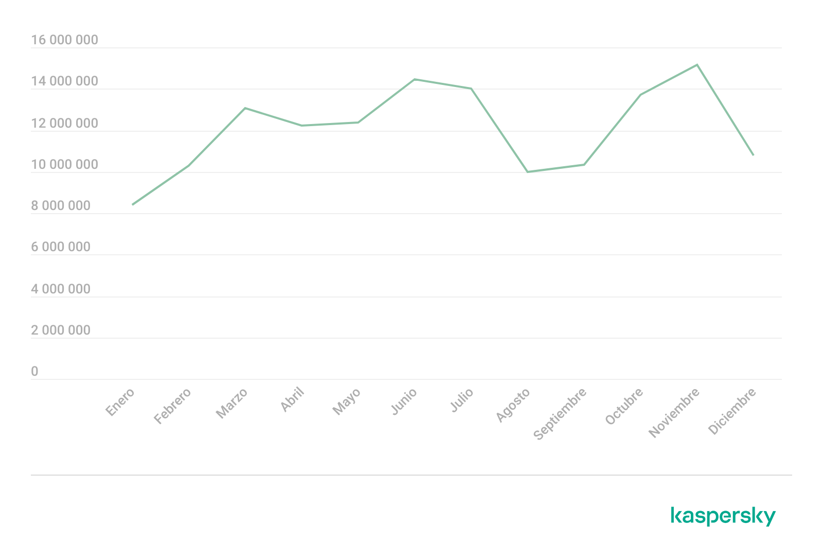 En 2025, las soluciones de Kaspersky bloquearon 144 722 674 de archivos adjuntos maliciosos en correo electrónico, cifra que supera en 19 millones las detecciones registradas en 2024. Los periodos de menor incidencia se registraron en los extremos del año (enero-febrero y noviembre-diciembre), con una baja observada durante agosto y septiembre. Los picos por número de detecciones del antivirus de correo se dieron en junio, julio y noviembre.